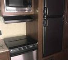 This camper offers an outdoor fridge for your extra beverages and a outdoor stovetop burner.